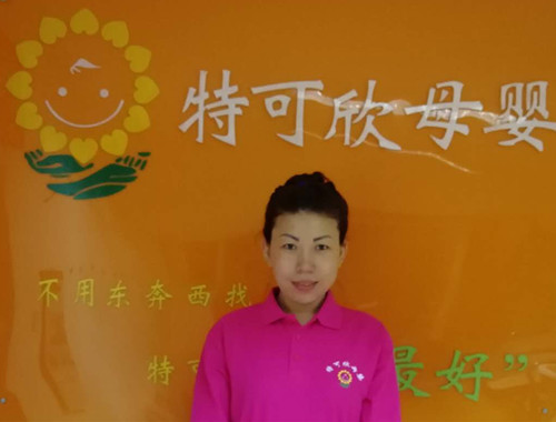 2007年从业特可欣,性格温顺,干净利落,精通婴儿早期开发,擅长产妇及婴儿护理。产妇护理技能:月子营养配餐,催乳,形体修复,子宫复旧,心理疏导;产褥期科学指导;婴儿护理技能:婴儿早教,洗澡,抚触,被动操,排气操,手指操;婴儿常见疾病的观察及预防指导:如:幽门痉挛,肠痉挛,黄疸观察,脐带消毒,鹅口疮,泪囊阻塞,尿布疹,湿疹等;婴儿大小便的观察,啼哭的观察等等;座右铭:做就做最好的