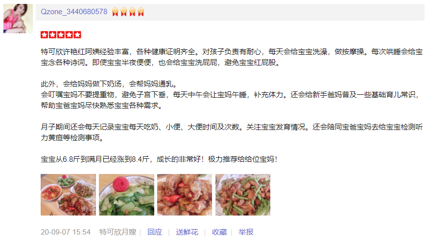 2008年从事母婴工作,性格开朗,善良热情,人品极好。擅长产妇及婴儿护理,产妇护理技能:通乳,月子餐营养搭配,产妇体能恢复,子宫复旧,产褥期科学指导,恶露观察等。婴儿护理技能:双胎,早产儿护理,洗澡,抚触,被动操,脐带消毒,婴儿常见疾病的观察及预防,如:湿疹,臀红,尿布疹,脐带炎,鹅口疮,黄疸,幽门痉挛肠痉挛等及早发现及早调理。月嫂座右铭:感恩您的选择,我会用我的真心,爱心,责任心,让您如果一个安心的产褥期!