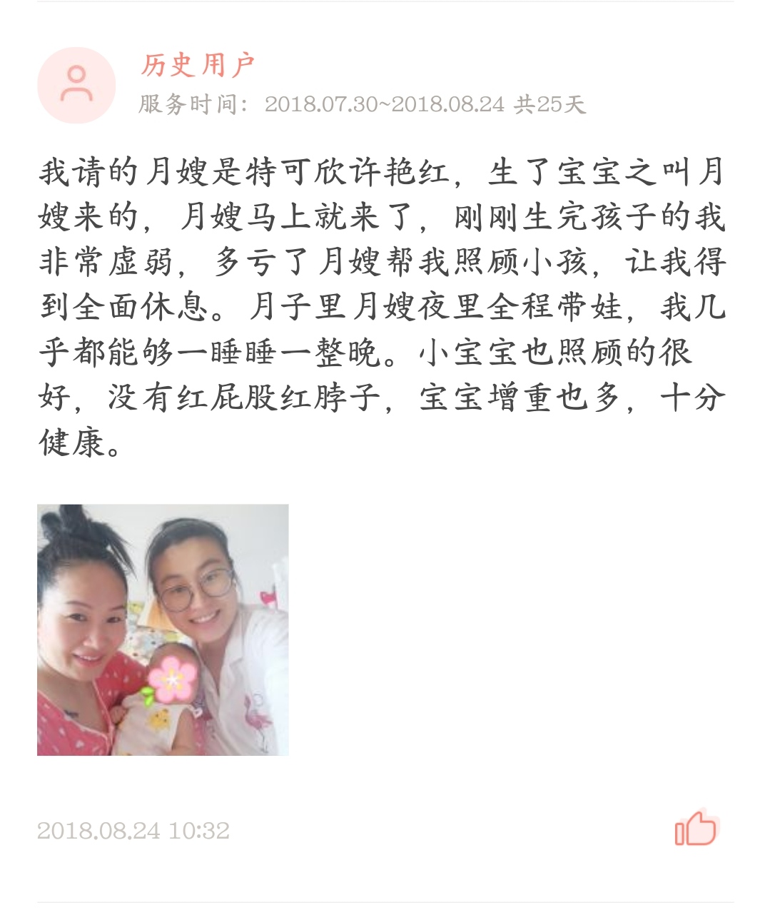 艳红姐是个称职可信却贴心的好月嫂,被家里人一直好评。