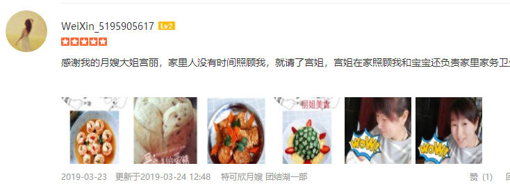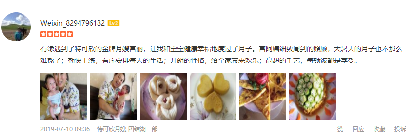 2010年从业特可欣,热情大方,勤劳肯干,擅长带双胎,产妇及婴儿护理。产妇护理技能:催乳,子宫复旧,产褥期科学指导,月子餐营养搭配等,心理健康指导等。婴儿护理技能:洗澡,抚触,被动操,排气操,脐带护理,黄疸观察,鹅口疮,泪囊阻塞等。月嫂座右铭:让您的月子温馨快乐