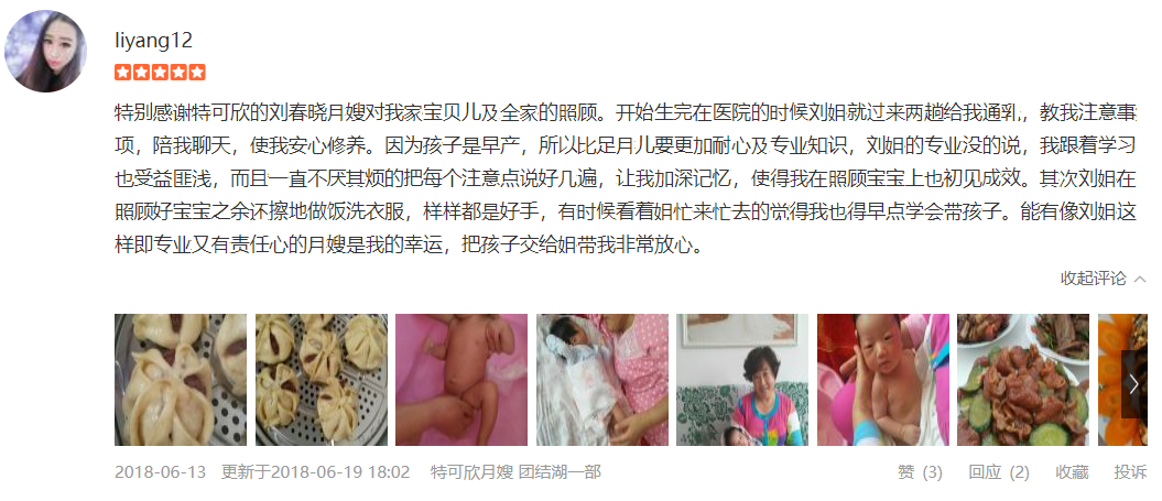 2012年从业特可欣月嫂工作,经验丰富。为人朴实,开朗热情,有丰富的护理新生儿的经验,喜欢孩子,有爱心。擅长新生儿护理及常见病的观察和处理。对待客户热情,细致,一致受到客户的认可。