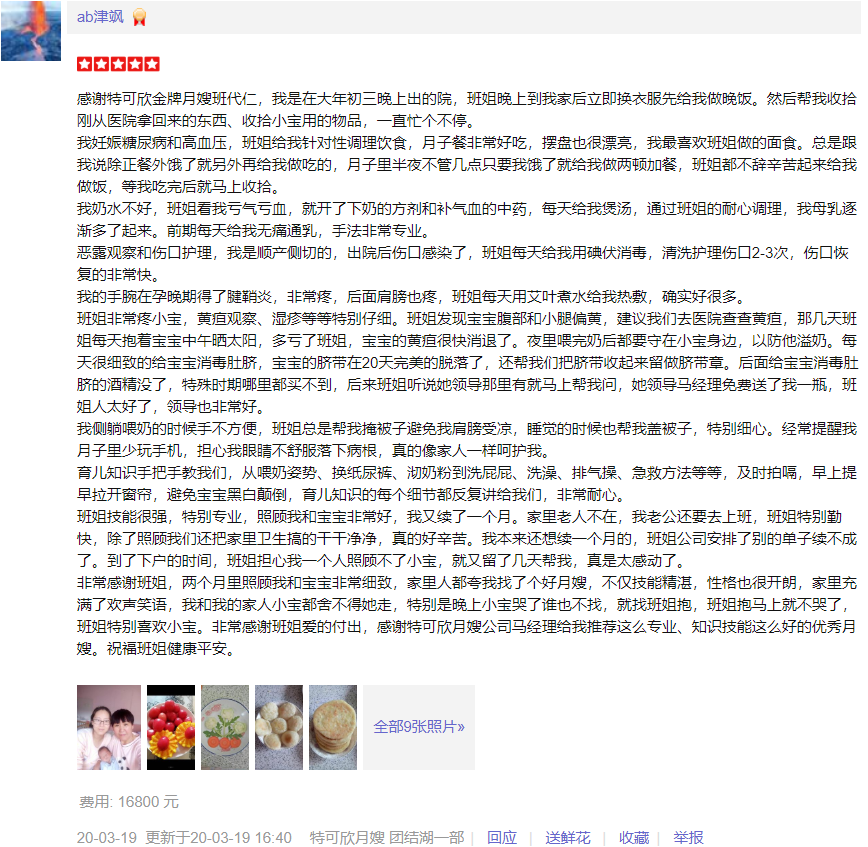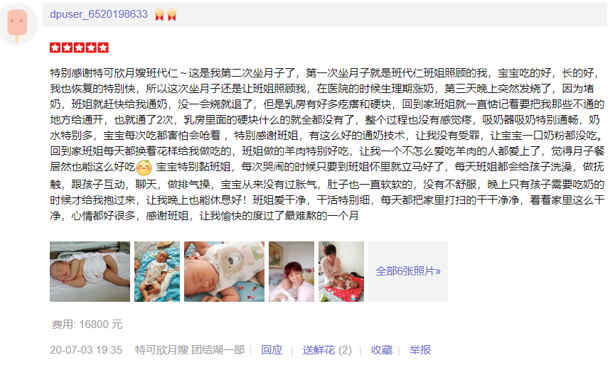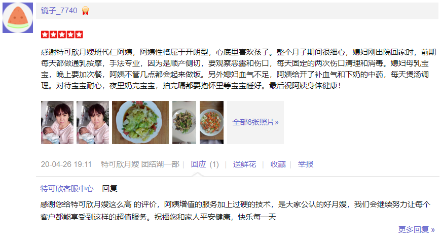 2010年从业特可欣,热爱母婴工作,为人朴实厚道,喜爱孩子,有爱心,耐心责任心,干活干净利落,多次受到客户好评。擅长产后母乳喂养的指导等