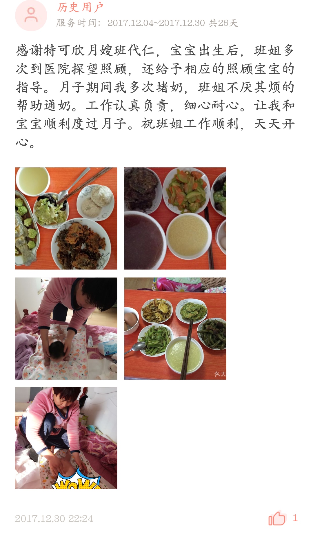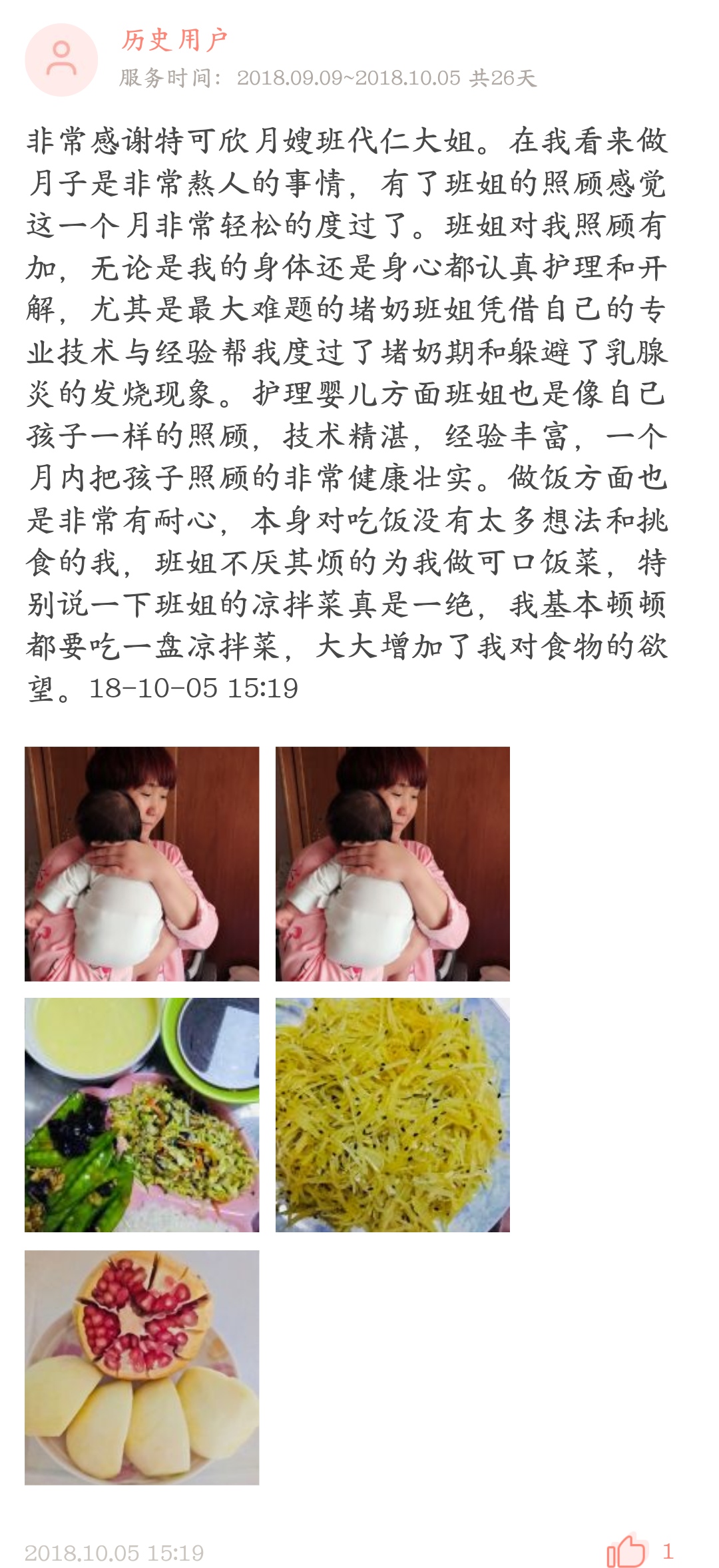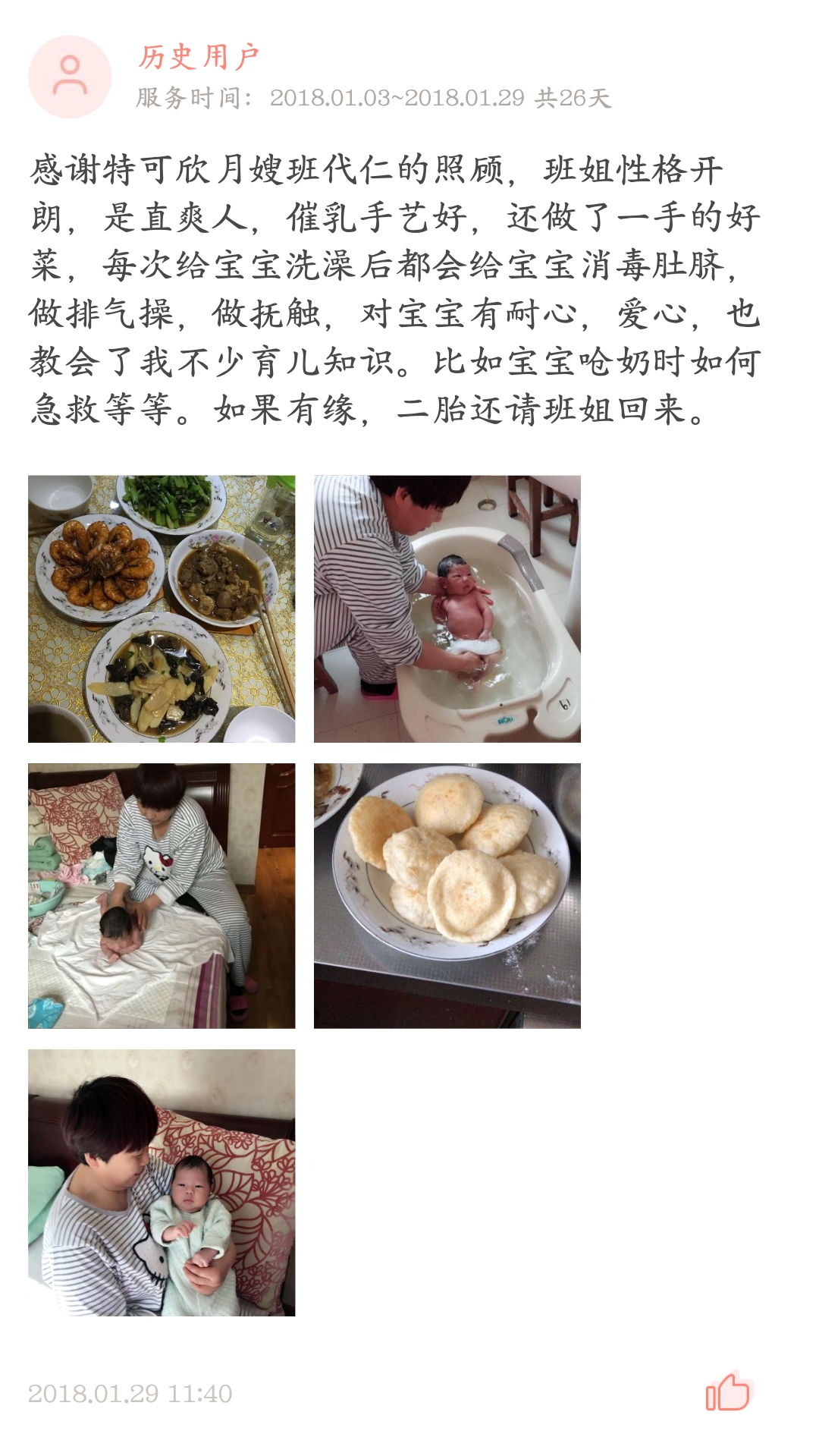 2010年从业特可欣,热爱母婴工作,为人朴实厚道,喜爱孩子,有爱心,耐心责任心,干活干净利落,多次受到客户好评。擅长产后母乳喂养的指导等