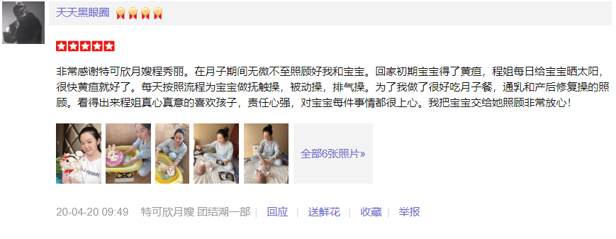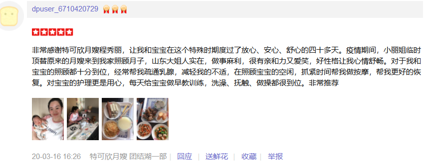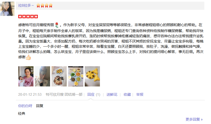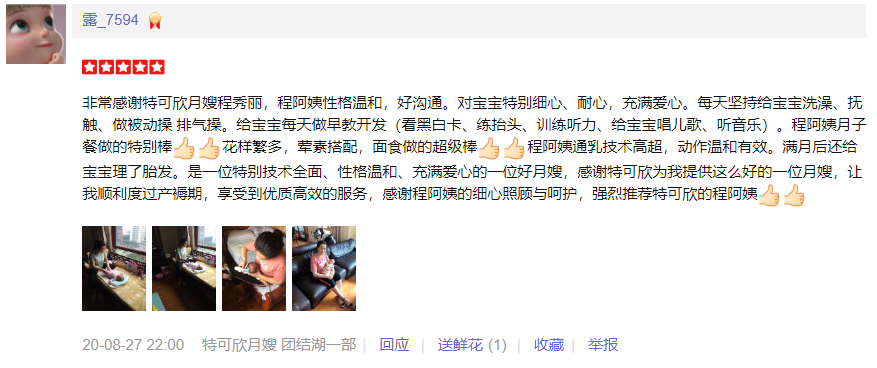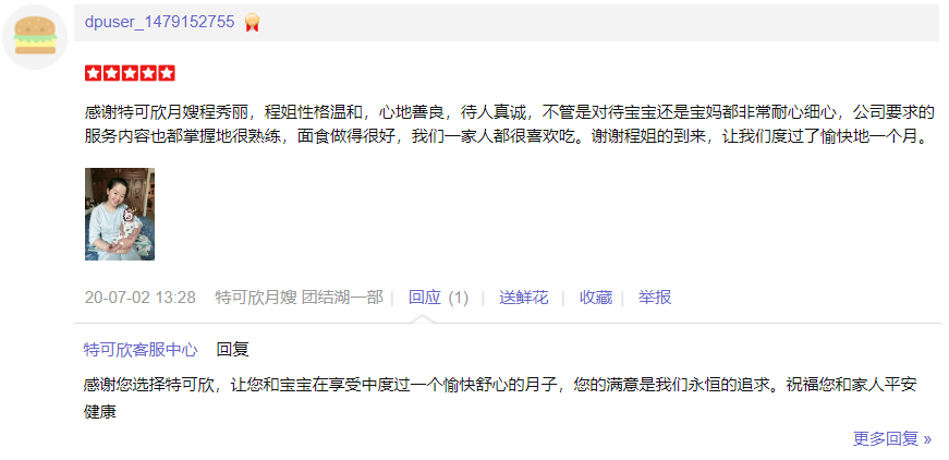 2013年从业特可欣性格随和, 爱笑 。产妇及婴儿护理。 产妇护理技能::月子餐的科学搭配,催乳,产后形体恢复,产褥汗科学指导,恶露观察,子宫复旧等; 婴儿护理技能:洗澡、抚触、被动操、脐部护理;大小便的观察,婴儿啼哭观察,新生儿早期智力开发,常见疾病的观察及预防指导;