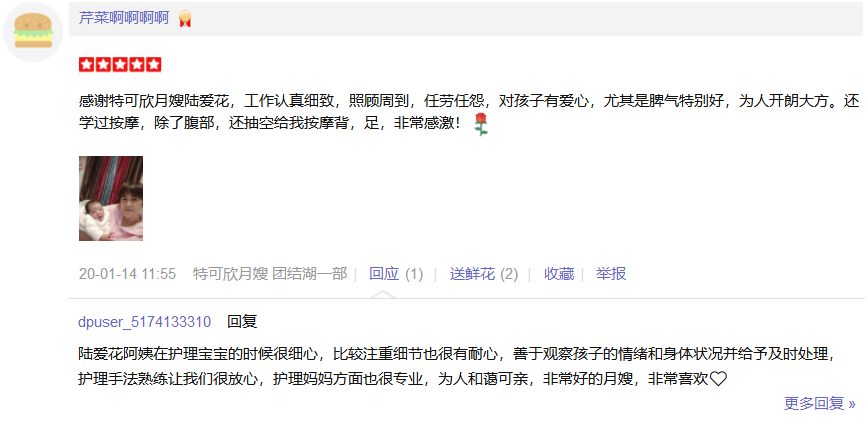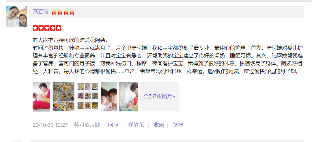 2016年加入特可欣从事月嫂工作,本人性格沉稳,做事踏实、有责任心。我会向对家人一样对待所有的宝宝和宝妈 擅长面食北方家常菜(煲汤、饺子、面条、烙饼)产妇及新生儿的护理。 产妇护理:剖腹产及顺产侧切的护理、乳房护理、月子餐配制、产褥期的科学指导、恶露的观察等; 婴儿护理:洗澡、抚触、被动操、排气操、新生儿早教、新生儿常见病的观察及预防;如:湿疹、臀红、黄疸、脐带消毒等。