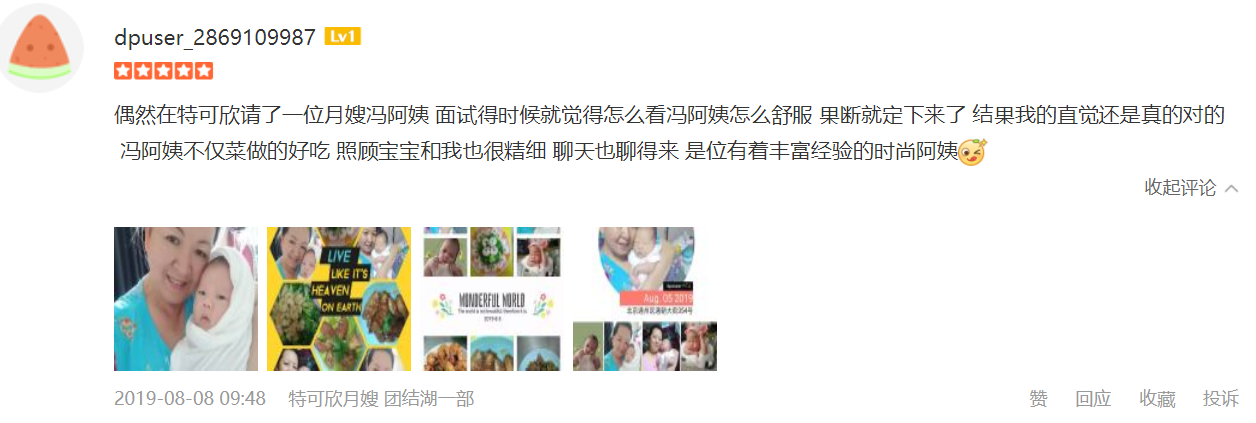怀孕生产后做的最对的决策之一,请了月嫂:有缘请到特可欣冯丽华姐姐,做饭好吃极了,全家都满意啊!处女座就是工作认真负责爱干净有耐心,冯姐凭多年工作经验指导着我这个新手妈妈,要不刀口液化不方便带孩子再没经验我估计我得抓狂。感谢冯姐感谢特可欣张伟老师,也感恩老天赐我好宝宝!18-09-03 16:06