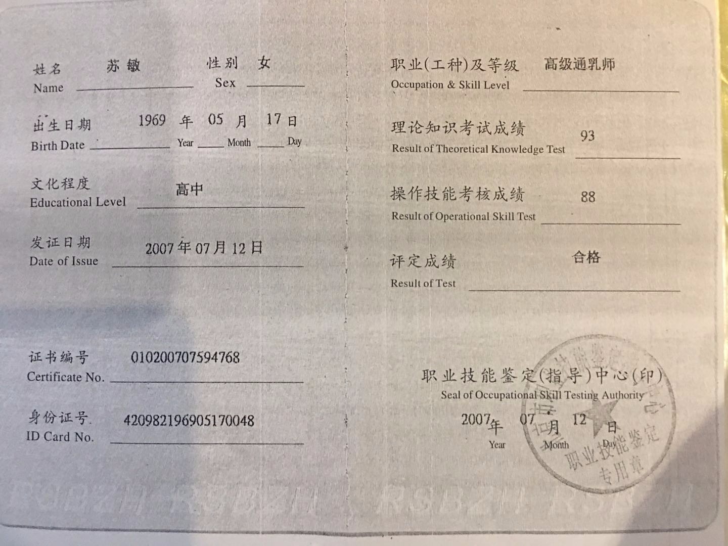 55岁 湖北省 已婚 健康状况良好 学历:高中