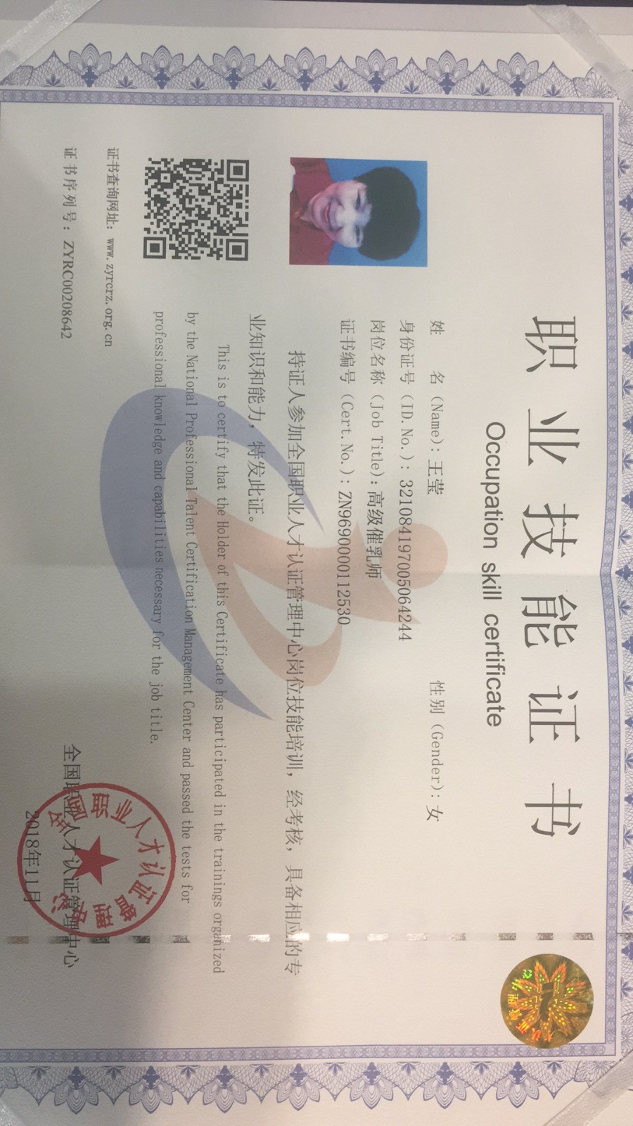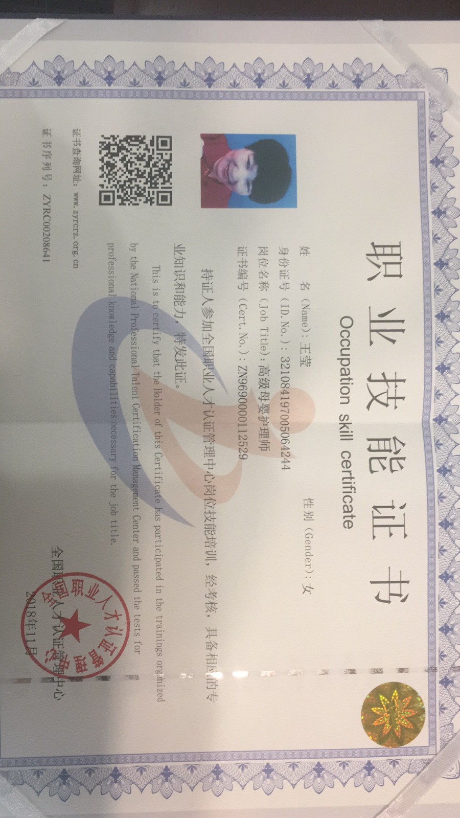 2012年从业特可欣,带过近40个宝宝,招牌母婴护理师,人品好,性格细腻,热情周到,沟通能力好,擅长月子餐营养制作,产妇产褥期科学指导及护理,子宫复旧等,婴儿常见病观察及预防;护理技能:催乳,子宫复旧,婴儿被动操,抚触,排气操等;月嫂座右铭:遇到就是缘分,感恩您的选择。