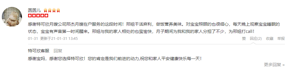 2010年从业特可欣,为人善良,擅长催乳及月子餐的合理搭配。