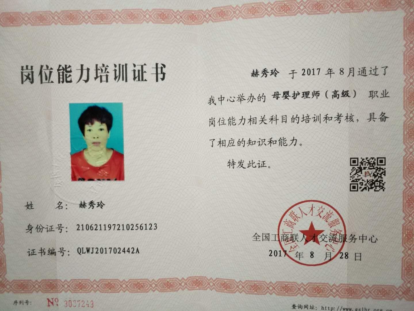 2012年从业特可欣,辽宁凤城妇联输送,工作认真负责,喜欢孩子,有爱心,有责任心。能根据不同产妇身体需要、合理配制月子餐,厨艺好,对新生儿护理观察仔细,对宝宝常见小毛病判断准确、处理得当,受客户一致好评。