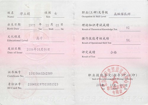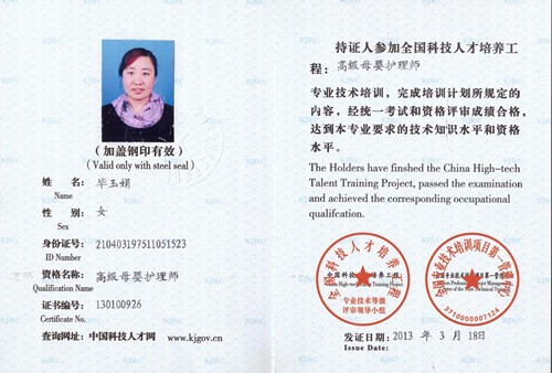 2006年从业特可欣,母婴护理师,有爱心,性格开朗,善于沟通。产妇护理技能:乳房护理,月子餐制作,产褥期科学指导,剖腹产,顺产侧切伤口的护理,子宫复旧等。婴儿护理技能:洗澡,抚触,被动操,排气操,黄疸观察,脐带消毒,湿疹,臀红,尿布疹等新生儿常见疾病的观察及预防指导等。