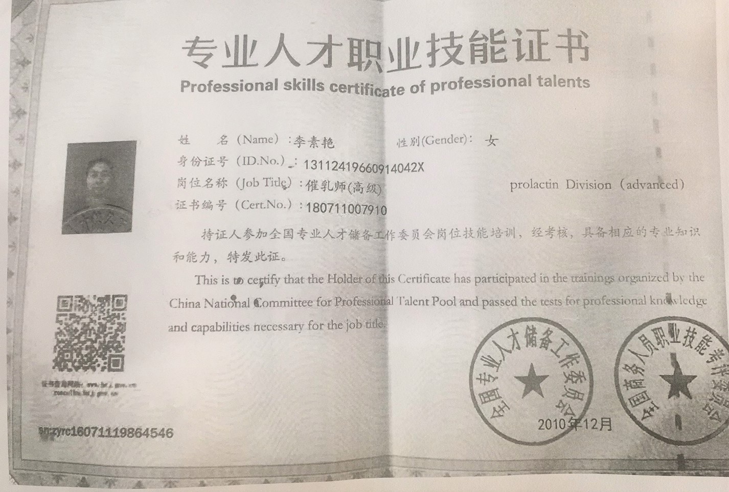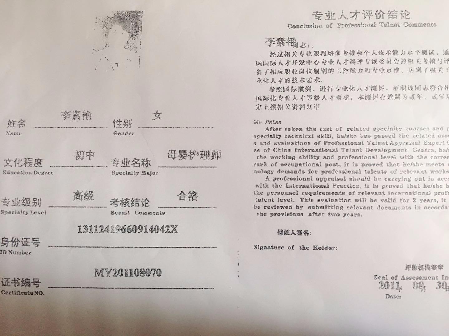 通过同事认识了李素艳李姐,很感谢李姐在月子期间对宝宝及宝妈的细心照顾。李姐育儿、照顾宝妈通乳、做月子餐等方面技术非常全面熟练,你值得拥有,强烈推荐。刚从医院出来,奶涨,李姐每天为我通乳按摩,通过物理及化学疗法,避免了乳腺炎,月子餐也做的非常可口,还兼顾了心理指导,缓解了我月子期间的抑郁,对宝宝的照顾也很细致,教了我很多育儿知识…重要的事情说三遍,你值得拥有,强烈推荐!