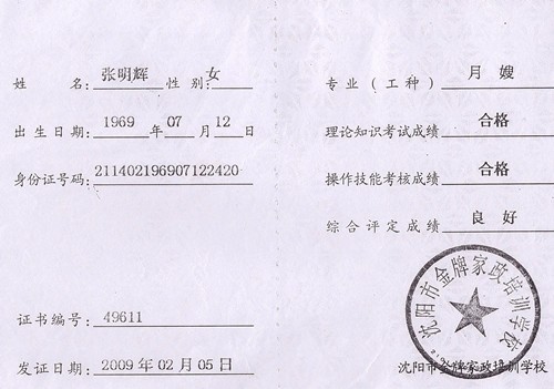 2009年从业特可欣,性格开朗,工作认真,干净利落,有爱心。擅长双胞胎、早产儿护理。产妇护理技能按摩,月子餐制作,心里疏导,产褥期的科学指导、恶露观察等。婴儿护理技能:洗澡、抚触、被动操、排气操、脐带护理、黄疸观察、鹅口疮等。月嫂座右铭:全心全意为客户服务