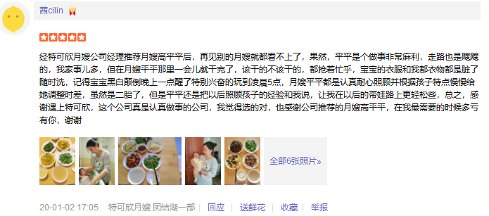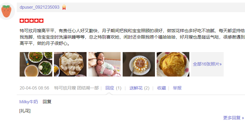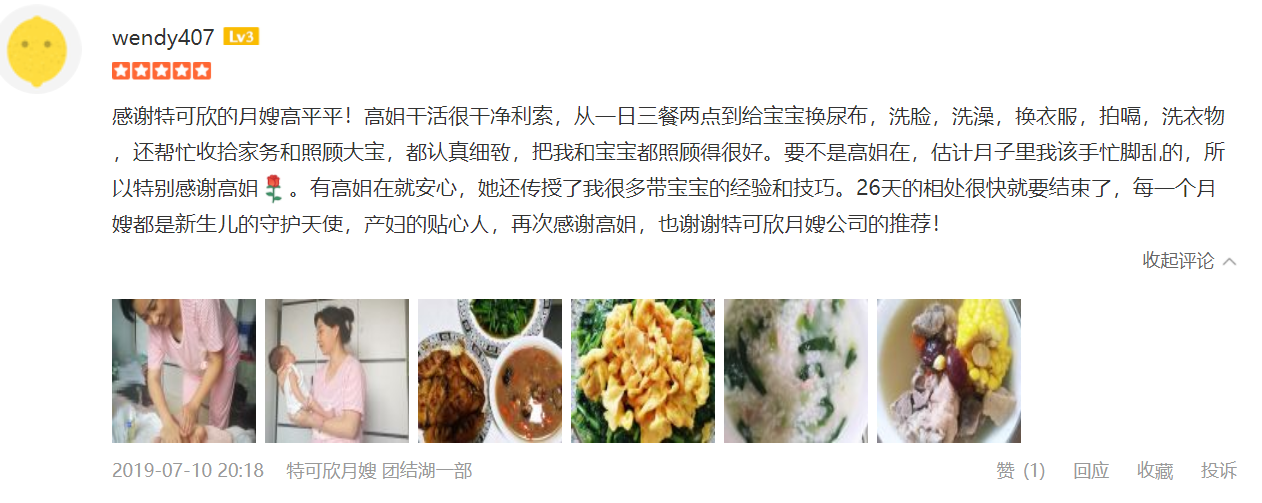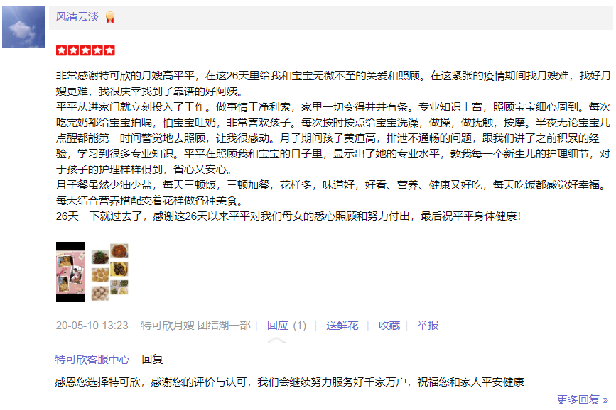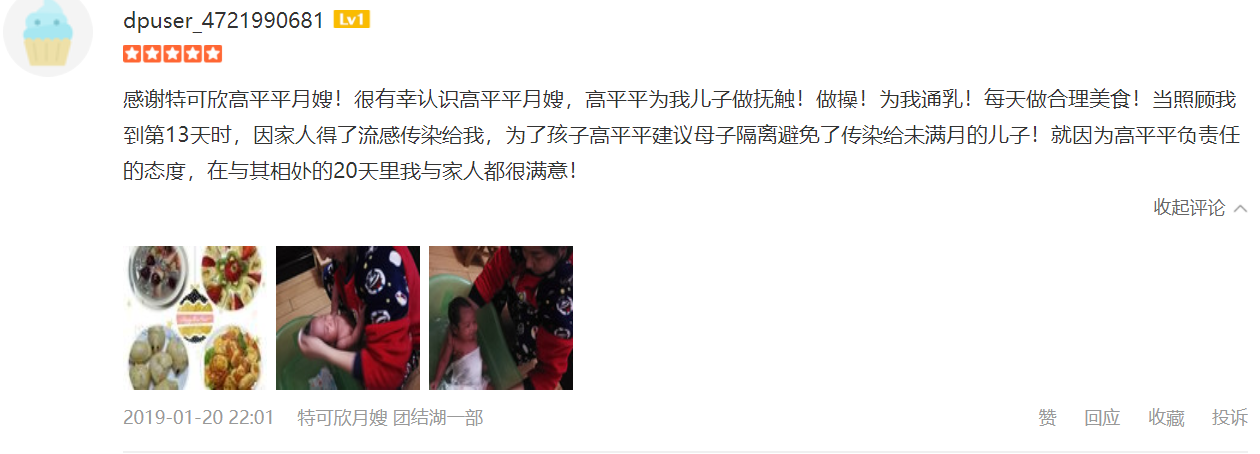 2014年从业特可欣,擅长新生儿早期智力开发,催乳,产妇及婴儿的护理; 婴儿护理方面: 洗澡,抚触,被动操,排气操及早期智力开发 ,湿疹,臀红、幽门痉挛、肠痉挛等新生儿的常见病能早期发现并进行预防和护理。 产妇护理:每日精心给产妇搭配营养配餐并根据根据实际情况进行调整,乳房护理,恶露观察,产褥汗科学指导,帮助产妇恢复体型,指导产妇科学喂养等。