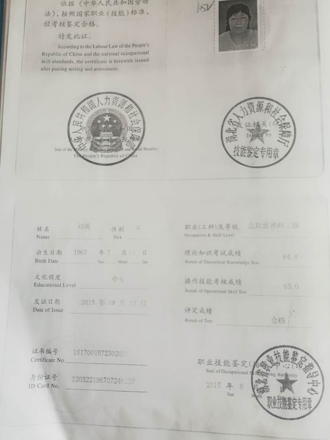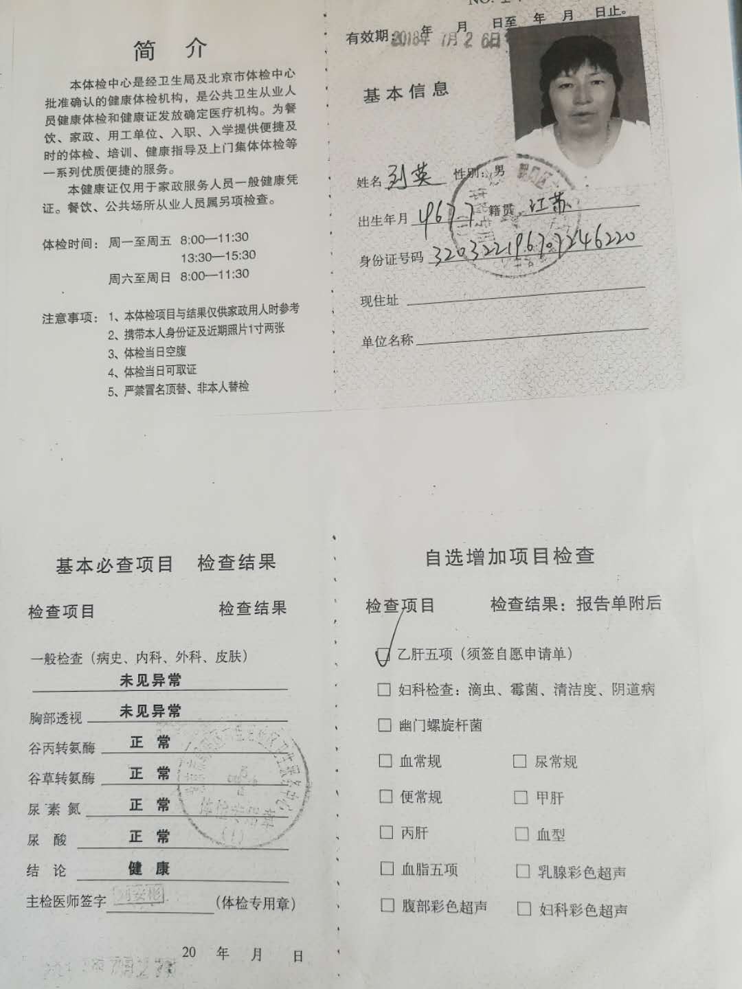 58岁 江苏省 已婚 健康状况良好 学历:高中