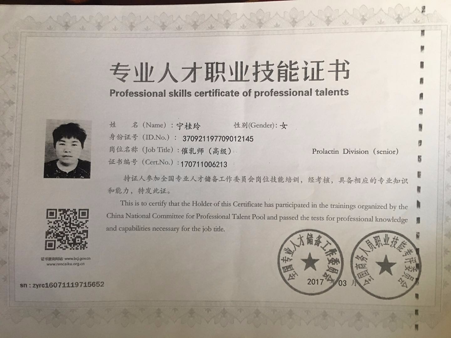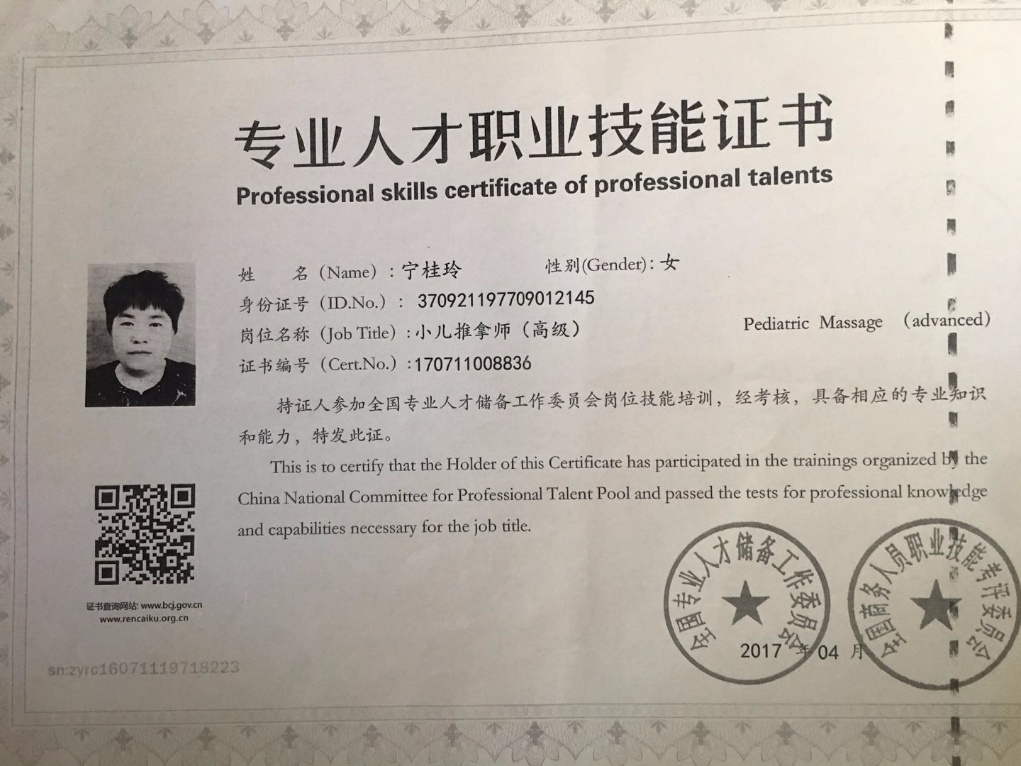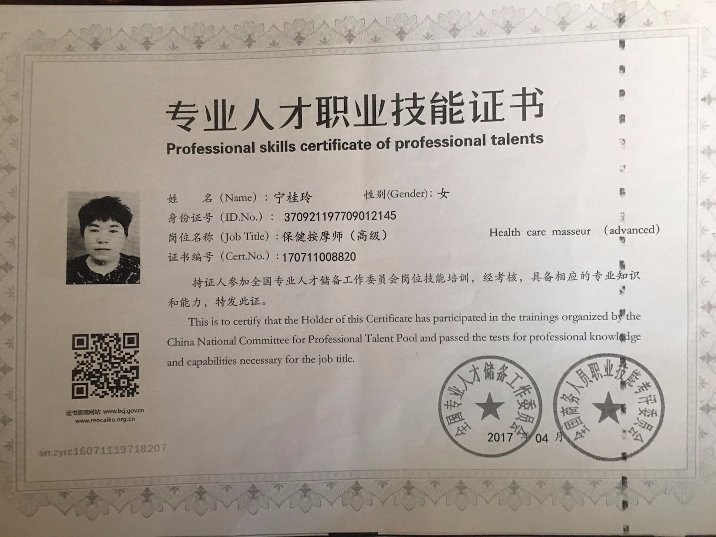 48岁 山东省 已婚 健康状况良好 学历:高中