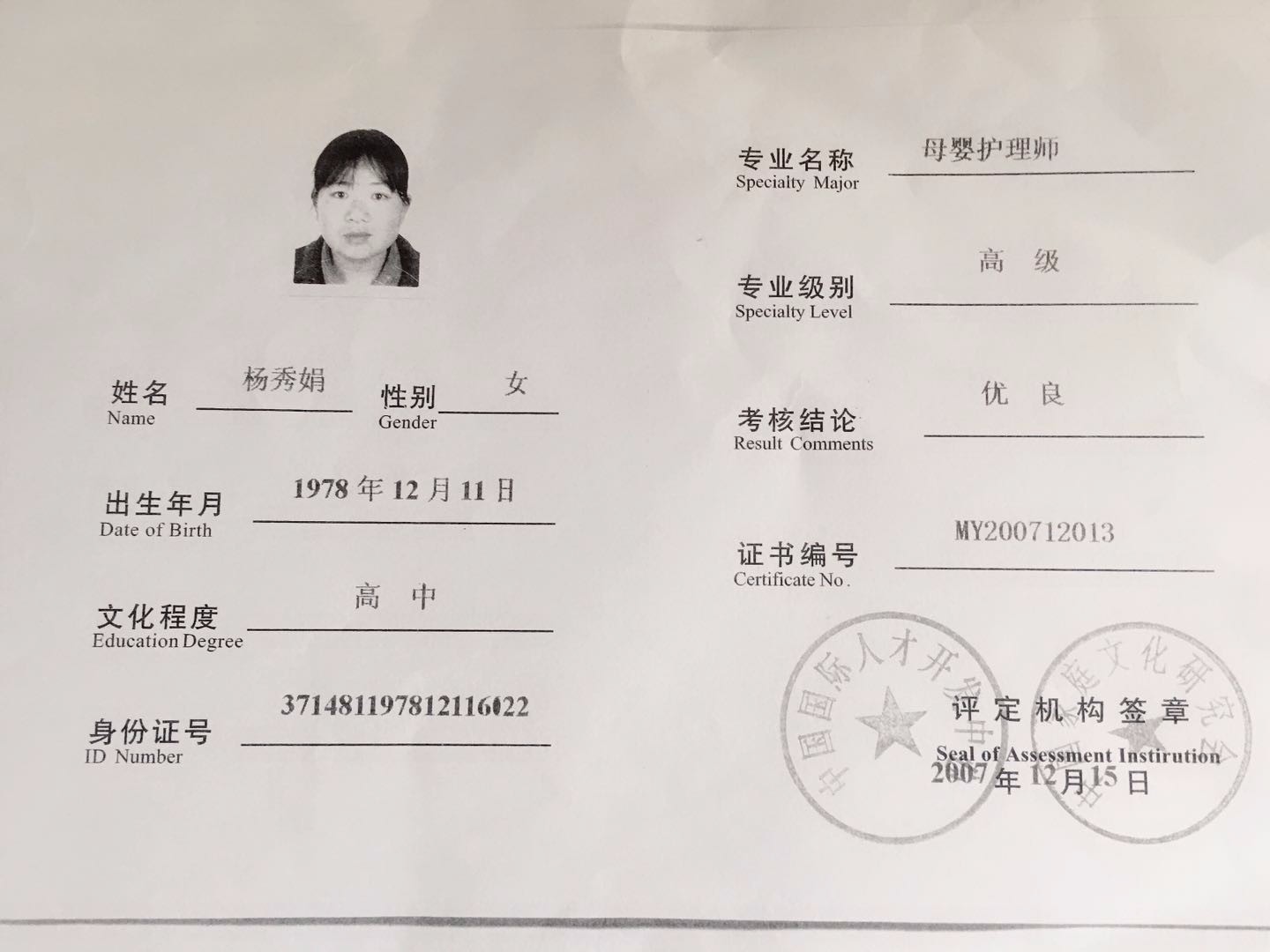 2007年起开始从事母婴服务(月嫂),为人善良,性格随和,工作任劳任怨 带过的宝宝每个宝宝都很健康,对待每一个宝宝都像自己的亲人一样; 婴儿护理方面: 每天为宝宝洗澡,抚触,做被动操,排气操及早期智力开发 对新生儿的常见病能及时发现进行预防和处理。 产妇护理:每日精心给产妇搭配营养配餐并根据根据实际情况进行调整,每日清洁护理乳房,帮助产妇恢复体型,指导产妇科学喂养。