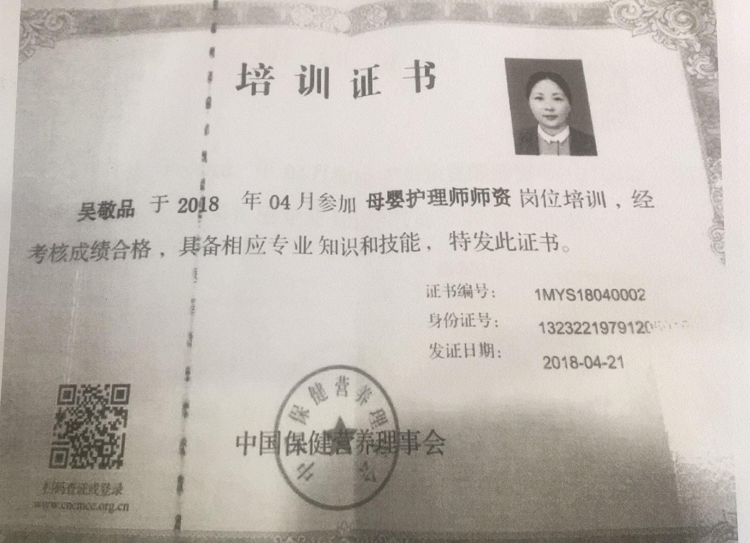 2016年从业特可欣,护理过十多个宝宝。护理新生儿工作认真有爱心,性格开朗有进取心。产妇技能:乳房的常规护理,月子餐制作,剖腹产,顺产侧切伤口护理等;婴儿护理技能:被动操,排气操、抚触、洗澡、湿疹、臀红等护理。