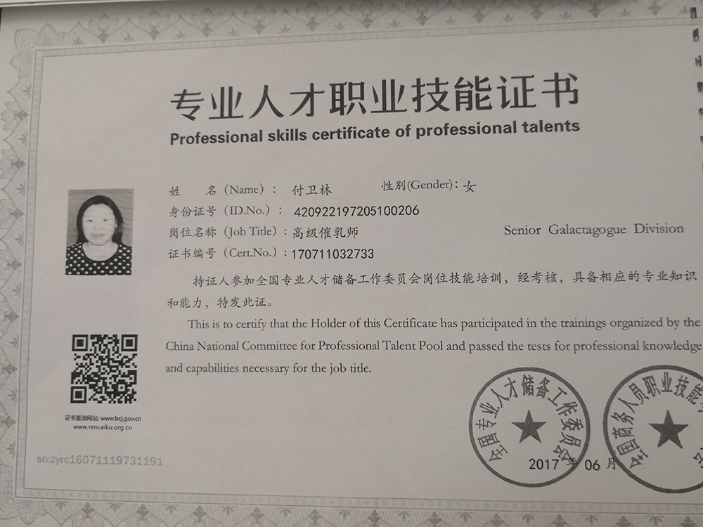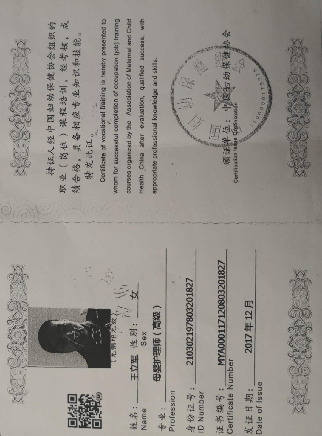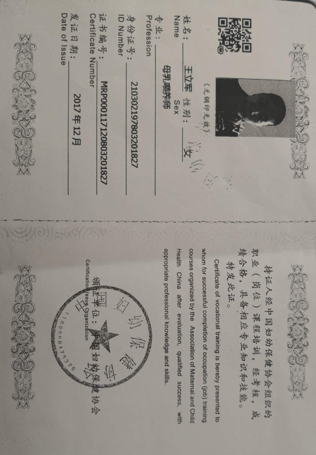 职业证书:母婴护理师;母乳喂养师;高级育婴师;早教师;