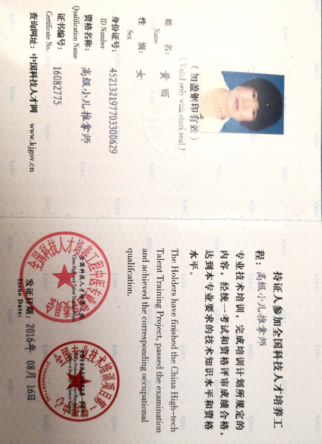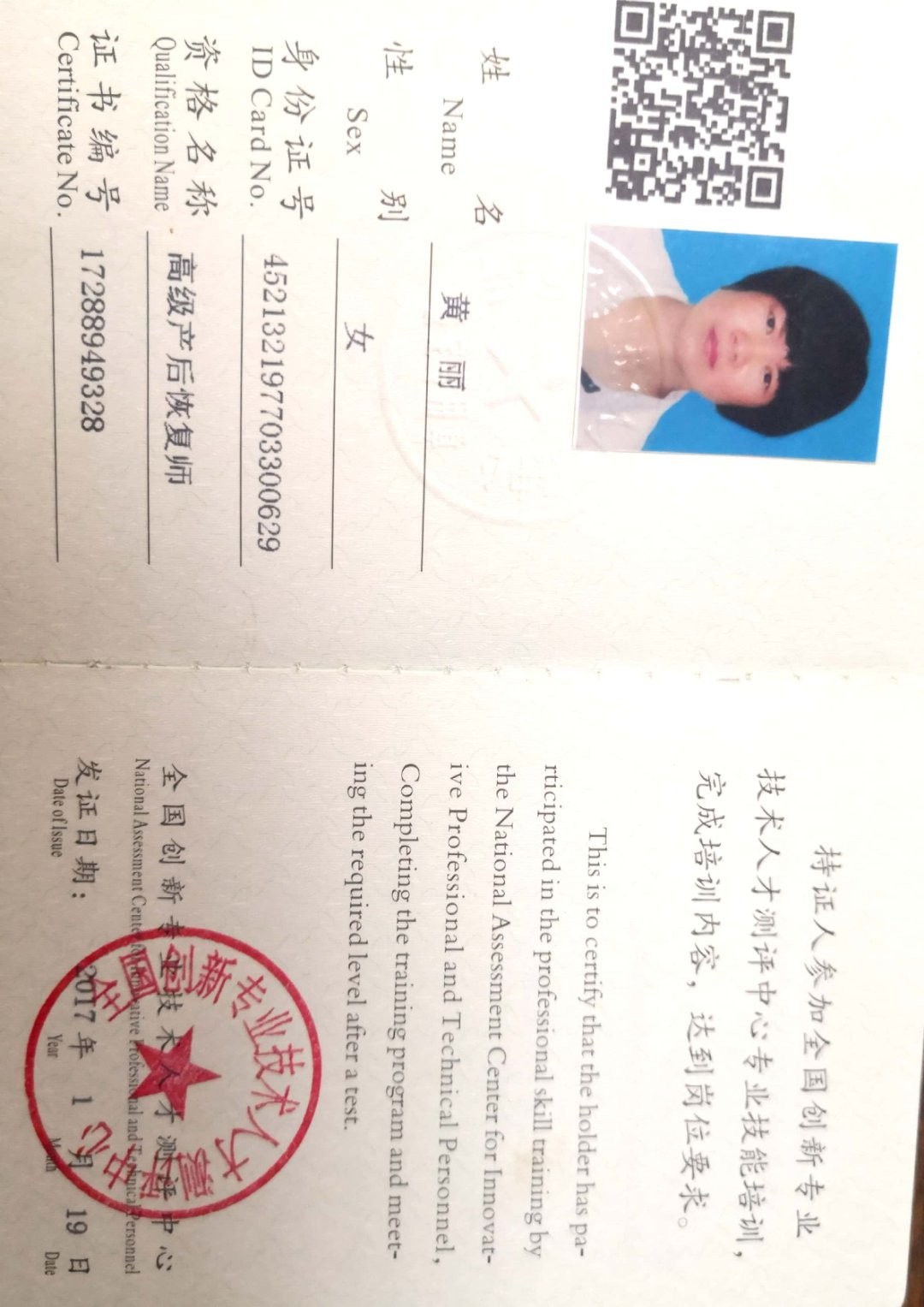 从业证书:高级母婴护理师,营养师,催乳师,产后修复,小儿推拿,急救证