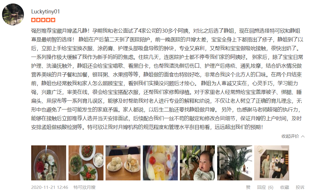 2015年从业特可欣,期间护理过双胎,低体重儿。热爱本职工作,有爱心有耐心责任心,产妇护理技能:月子餐的合理搭配,产后月子病的预防指导,恶露观察等,婴儿护理技能:洗澡,抚触,被动操,排气操,常见疾病的观察及预防指导,带过疝气,泪囊炎,肠绞痛等