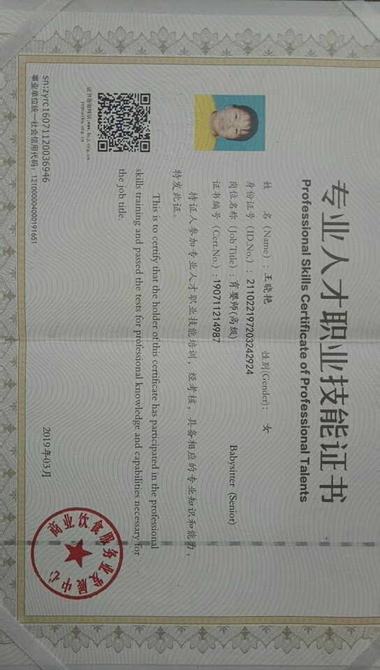 2015年加入特可欣,性格随和,干净利落,做事踏实,对产妇恶露观察及护理,乳房护理,急性乳腺炎处理,月子餐制做,南北菜,煲汤。新生儿黄疸观察处理,湿疹尿布疹观察及处理,脐带消毒,洗澡、抚触等。
