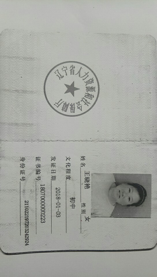 54岁 辽宁省 已婚 健康状况良好 学历:初中