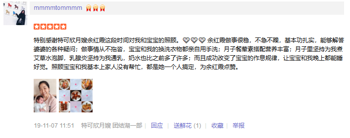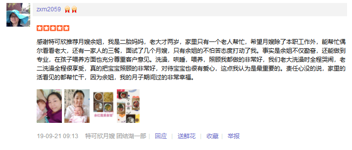 2015年加入特可欣,为人稳重踏实,有耐心,责任心,擅长产妇及婴儿护理;产妇护理技能:催乳,月子餐合理搭配,子宫复旧,按摩,形体恢复;产褥期的科学护理与指导等。婴儿护理技能:洗澡,游泳,抚触,被动操,排气操,常见疾病的观察与预防指导等(如:黄疸,脐带,鹅口疮,尿布疹等