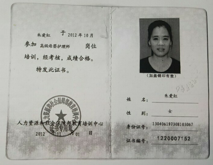 2012年从事月嫂行业,人品好,有耐心 细心 责任心,擅长月子餐,产妇及婴儿护理。 产妇护理技能:乳房护理,心里疏导、恶露观察,子宫复旧,体形恢复、产褥期的科学指导等。 婴儿护理技能:抚触,被动操,排气操,新生儿常见疾病的观察及预防如:黄疸,湿疹,臀红,尿布疹,鹅口疮等。