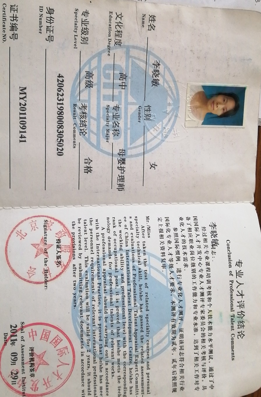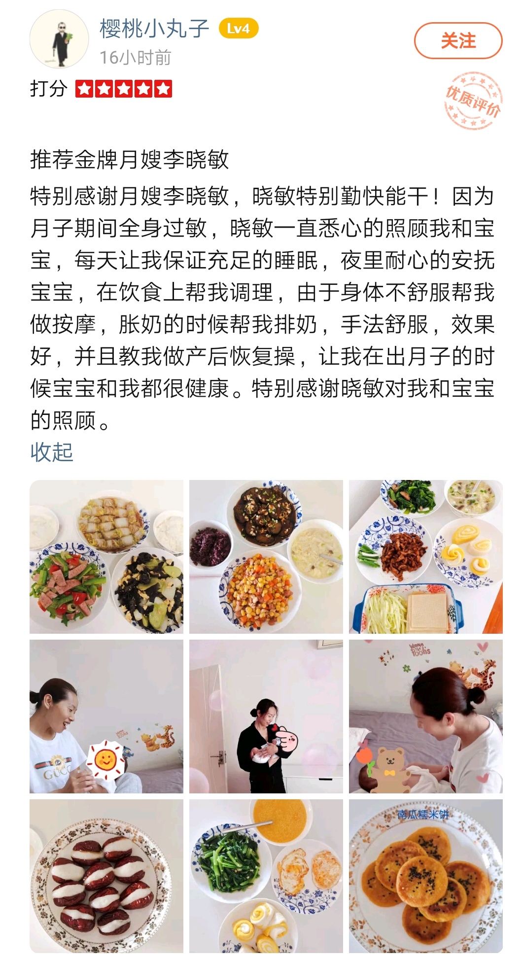 2011年从事月嫂行业,带过双胎,早产儿,性格开朗,爱笑,有爱心,责任心,沟通能力好。擅长产妇及婴儿护理。 产妇护理技能:月子餐制作,乳房护理,心里疏导,恶露观察,子宫复旧,体形恢复、产褥期的科学指导等。 婴儿护理技能:抚触,被动操,排气操,新生儿常见疾病的观察及预防如:黄疸,湿疹,臀红,尿布疹,鹅口疮等。
