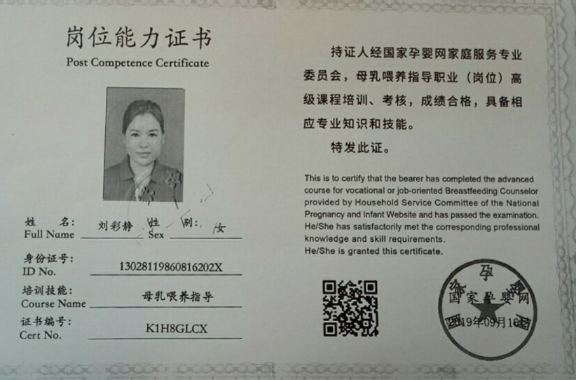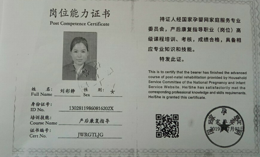 2016从事特可欣,带过18个宝宝,性格开朗,做饭好,细心,责任心,擅长煲汤,产妇及婴儿护理。 产妇护理技能:月子餐制作,乳房护理,心里疏导,恶露观察,子宫复旧,体形恢复、产褥期的科学指导等。 婴儿护理技能:洗澡,抚触,被动操,排气操,新生儿常见疾病的观察及预防如:黄疸,湿疹,臀红,尿布疹等。