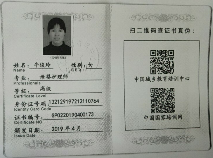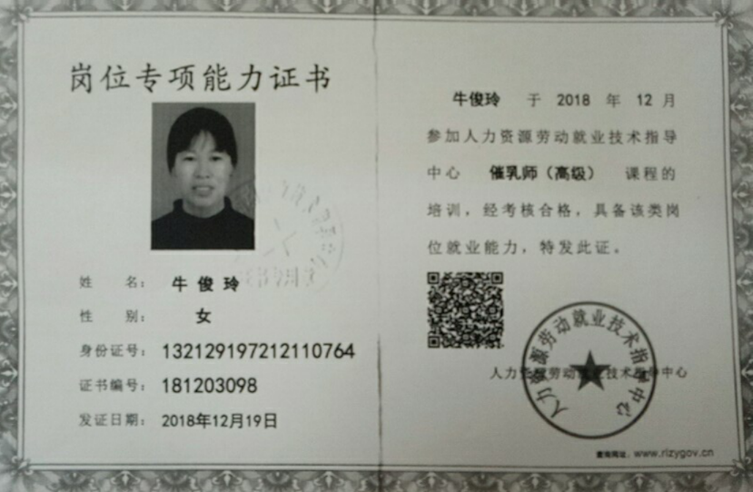 2014年从事月嫂行业,带30多个的宝宝,性格稳重踏实,喜欢孩子,有责任心,沟通能力好,做饭好,擅长月子餐的营养搭配,产妇及婴儿护理。 产妇护理技能:乳房护理,心里疏导,恶露观察,子宫复旧,体形恢复、产褥期的科学指导等。 婴儿护理技能:抚触,被动操,排气操,新生儿常见疾病的观察及预防如:黄疸,湿疹,臀红,尿布疹,鹅口疮等。