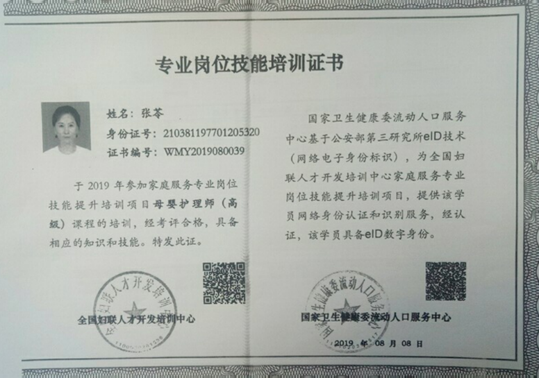 2016年从事月嫂工作,带过17个宝宝,性格温和,做事稳重踏实,喜欢宝宝,擅长月子餐,产妇及婴儿护理。 产妇护理技能:乳房护理,月子营养餐配制,子宫复旧,产褥期科学指导,恶露观察,形体恢复等。 婴儿护理技能:洗澡,婴儿早教,被动操,排气操,抚触,黄疸观察,脐带消毒,湿疹,臀红,鹅口疮等常见病的观察及预防等。