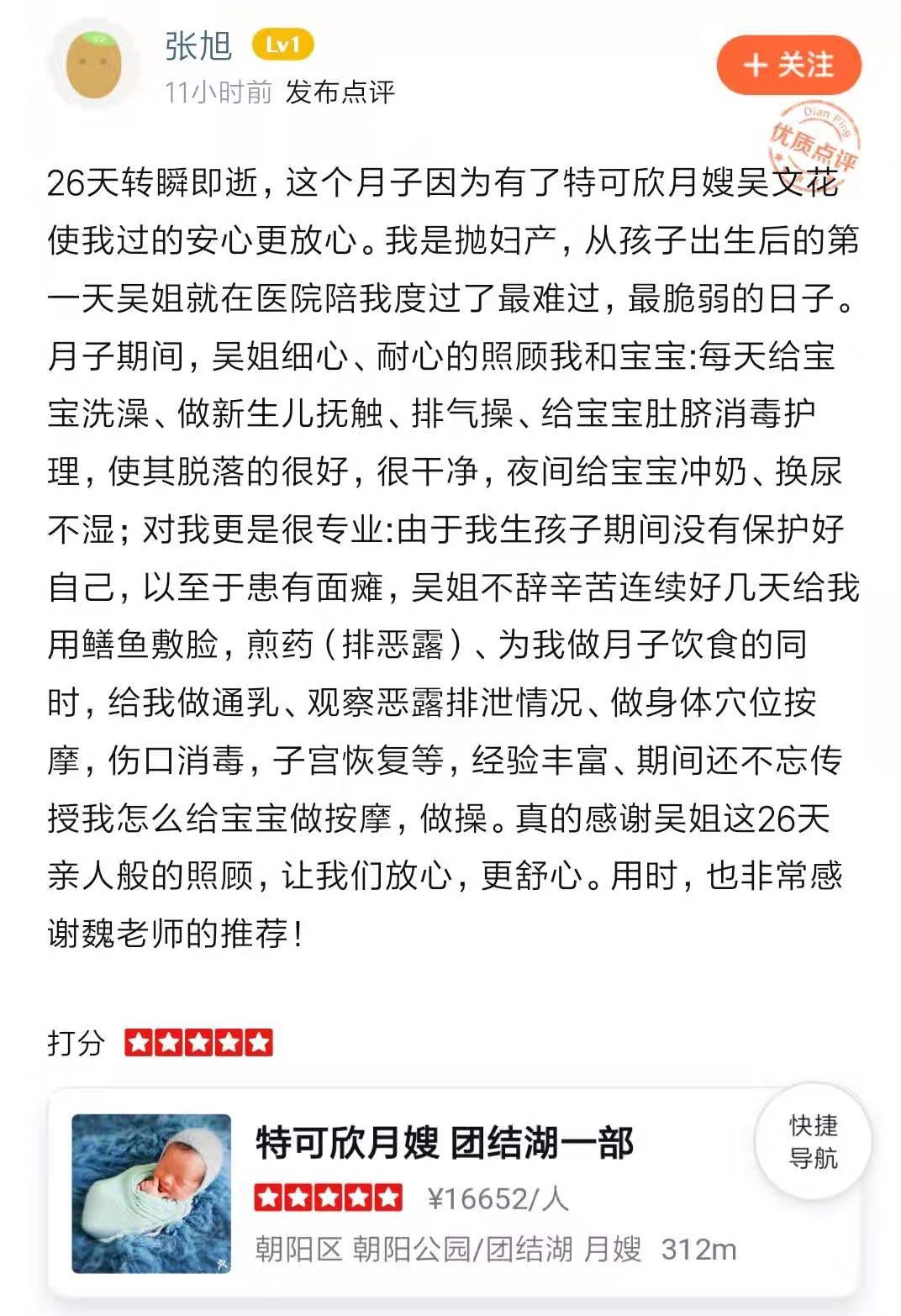 2015年从事月嫂行业,性格温和,踏实,喜欢宝宝,擅长煲汤,月子餐,产妇及婴儿护理 产妇护理技能:每日精心给产妇配制营养餐并根据实际情况进行调整,乳房护理,恶露观察,产褥汗科学指导,帮助产妇恢复体型,指导产妇科学喂养等。 婴儿护理技能:每天为宝宝洗澡,抚触,做被动操,排气操,对新生儿的常见病能及时发现进行预防和处理。