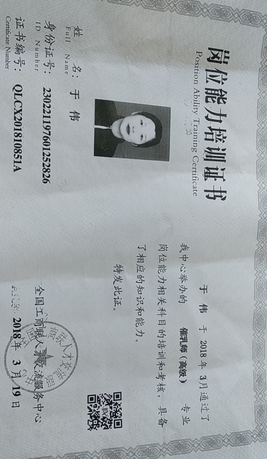50岁 黑龙江省 已婚 健康状况良好 学历:初中