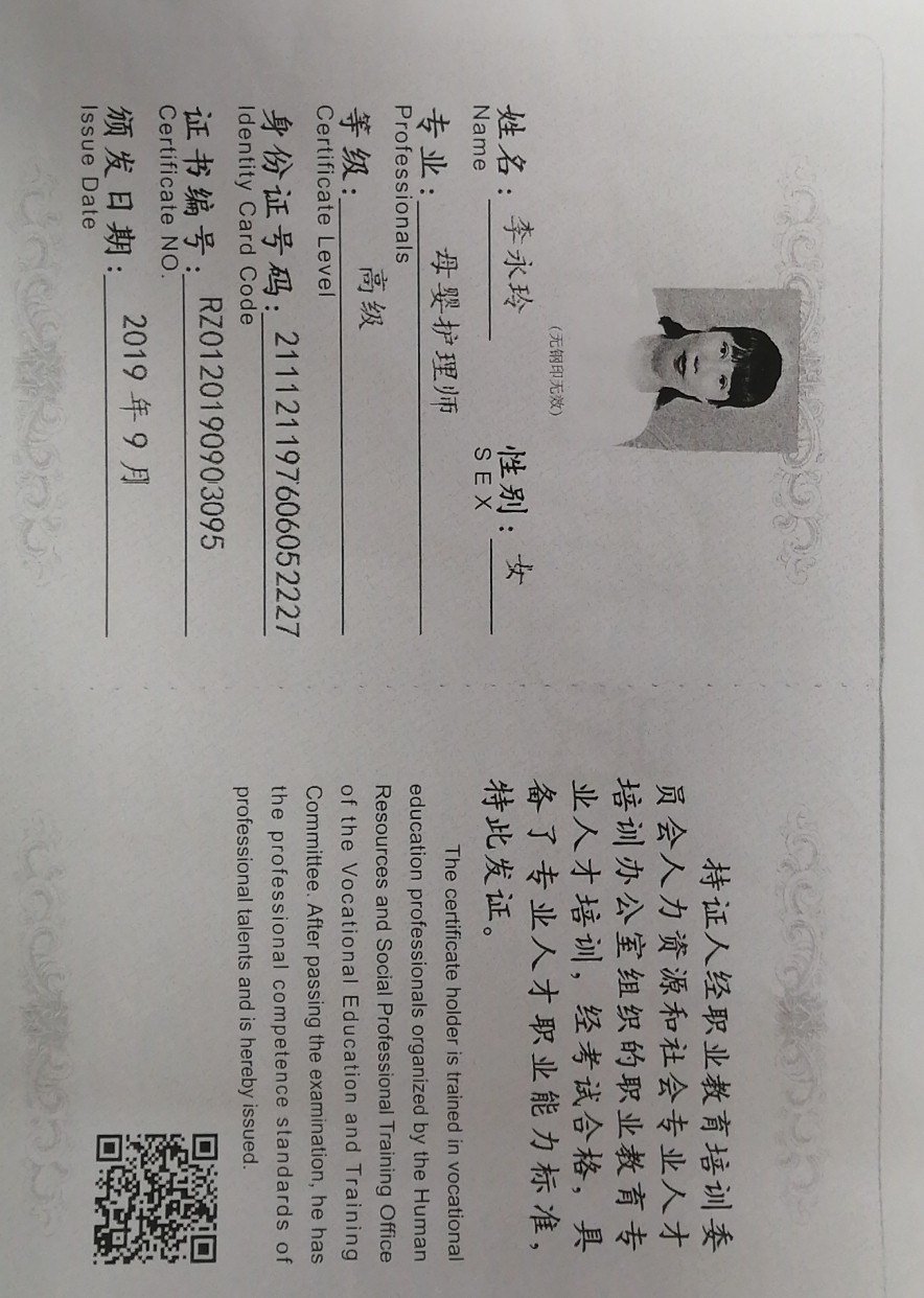 2017年从事月嫂行业,带过18个宝宝,为人温和,有爱心 耐心 责任心,擅长煲汤,产妇及婴儿护理 产妇护理技能:子宫复旧,恶露观察,产褥期的科学指导,形体及体能康复等; 婴儿护理技能:早教,被动操,排气操,抚触等。 常见疾病的观察如:脐带消毒,黄疸观察,湿疹,臀红的预防与护理等.