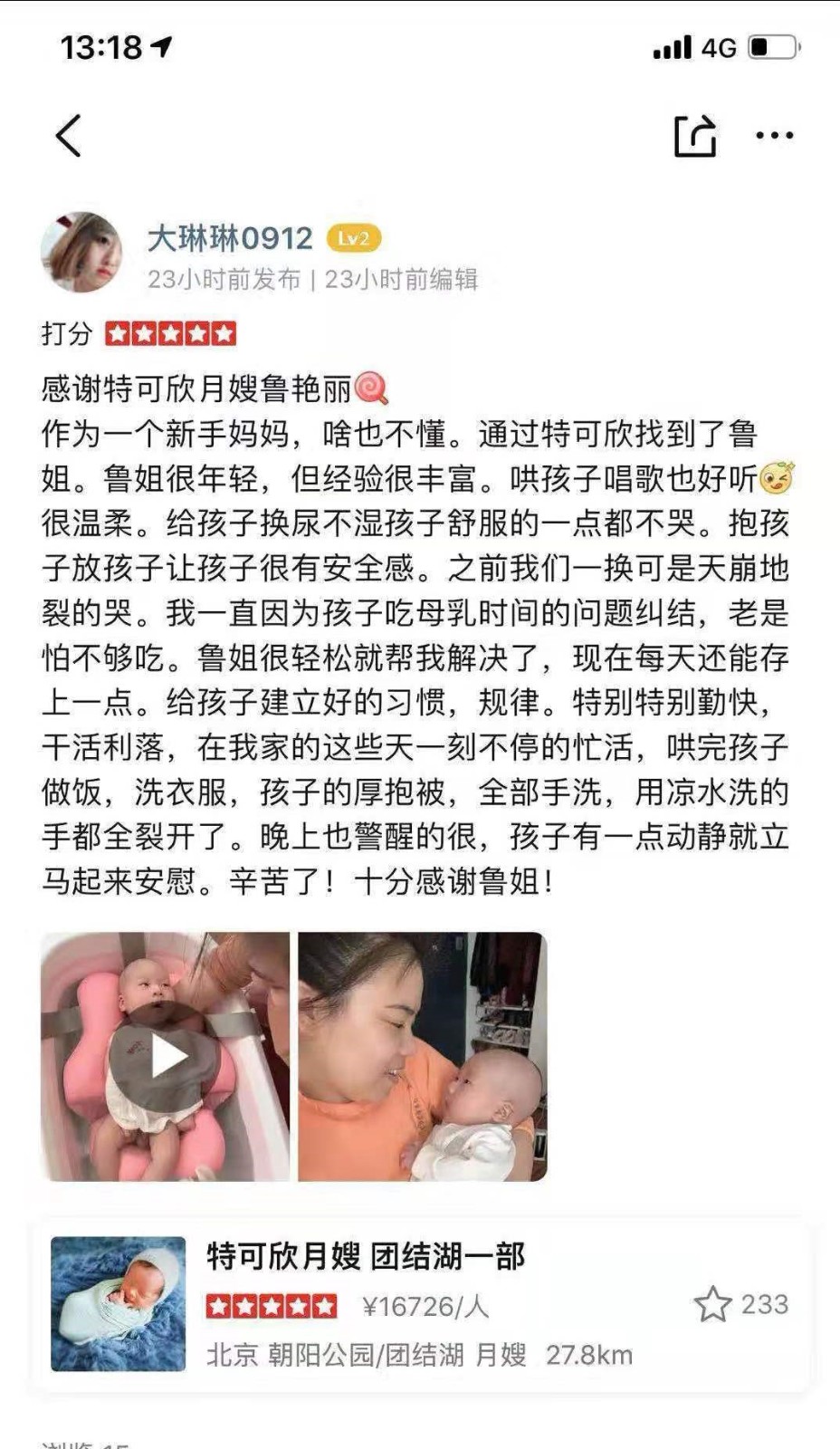 2016年从业特可欣,性格温和,干净利落,有爱心,容易沟通,擅长月子餐,面食,煲汤,产妇及婴儿护理 产妇护理:月子餐制作,心里疏导,体形恢复 婴儿护理:抚触,宝宝辅助操,被动操,排气操,新生儿常见疾病的观察及预防如:黄疸,湿疹,臀红,尿布疹,鹅口疮等。