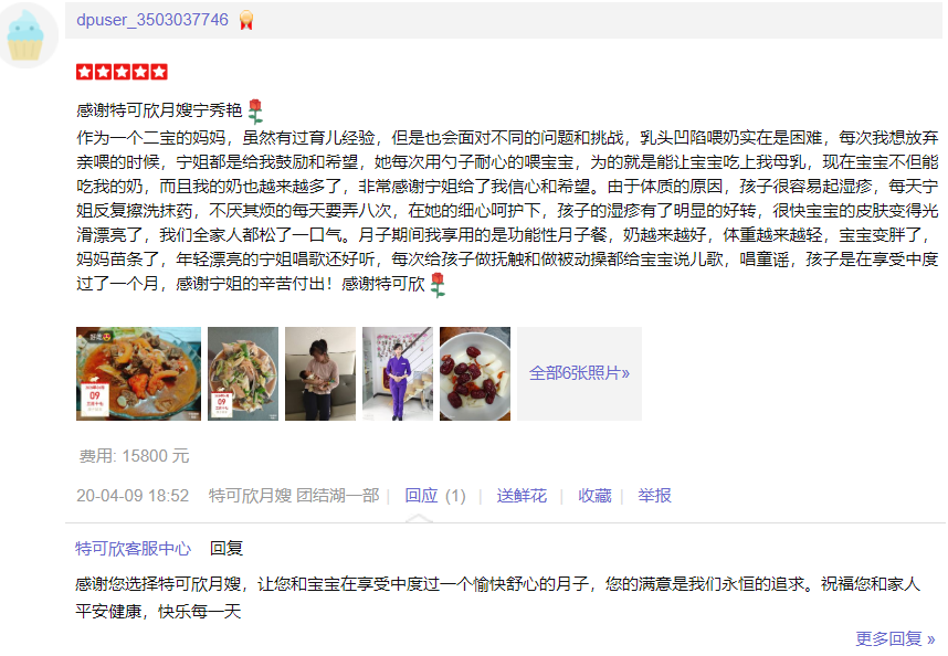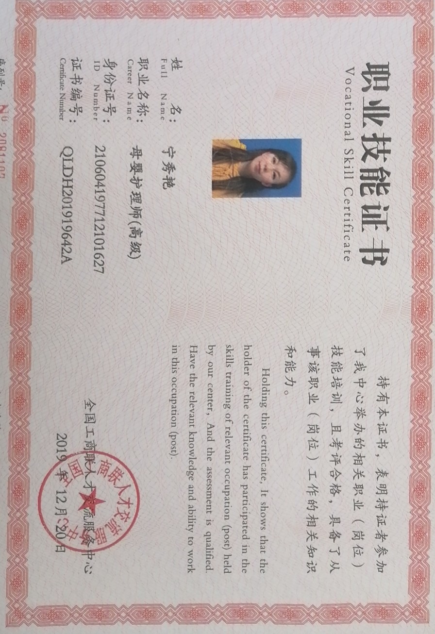 2014年从事月嫂行业,性格温和,善于沟通。 产妇护理:乳房护理、月子餐配制、产褥期的科学指导、恶露的观察产后修复等; 婴儿护理:抚触、被动操、排气操、新生儿早教、新生儿常见病的观察及预防如:湿疹、臀红、黄疸、脐带消毒等