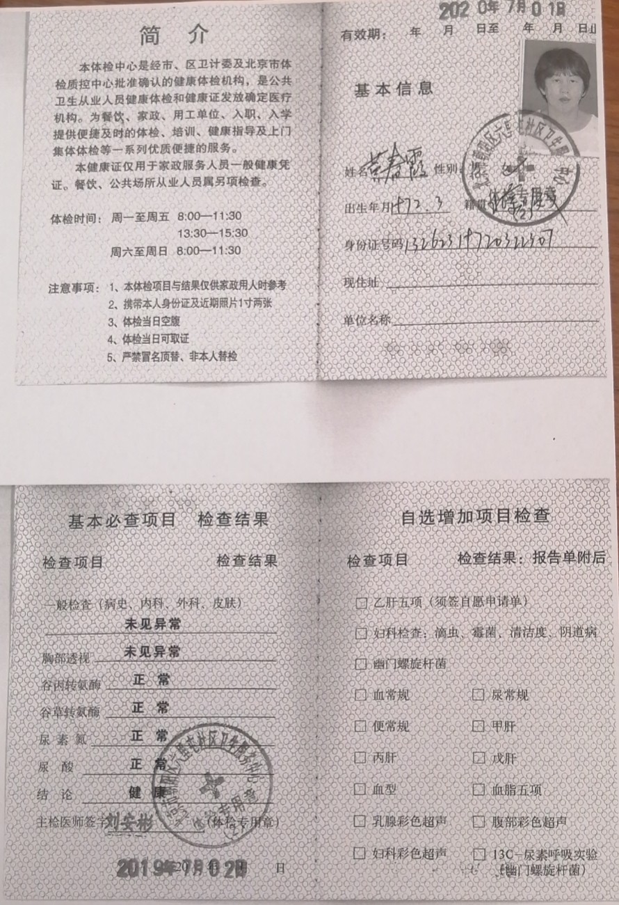 54岁 北京 已婚 健康状况良好 学历:高中