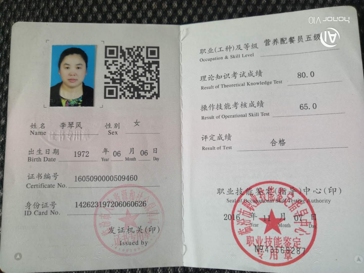 53岁 山西省 已婚 健康状况良好 学历:高中