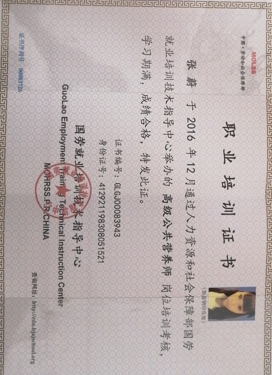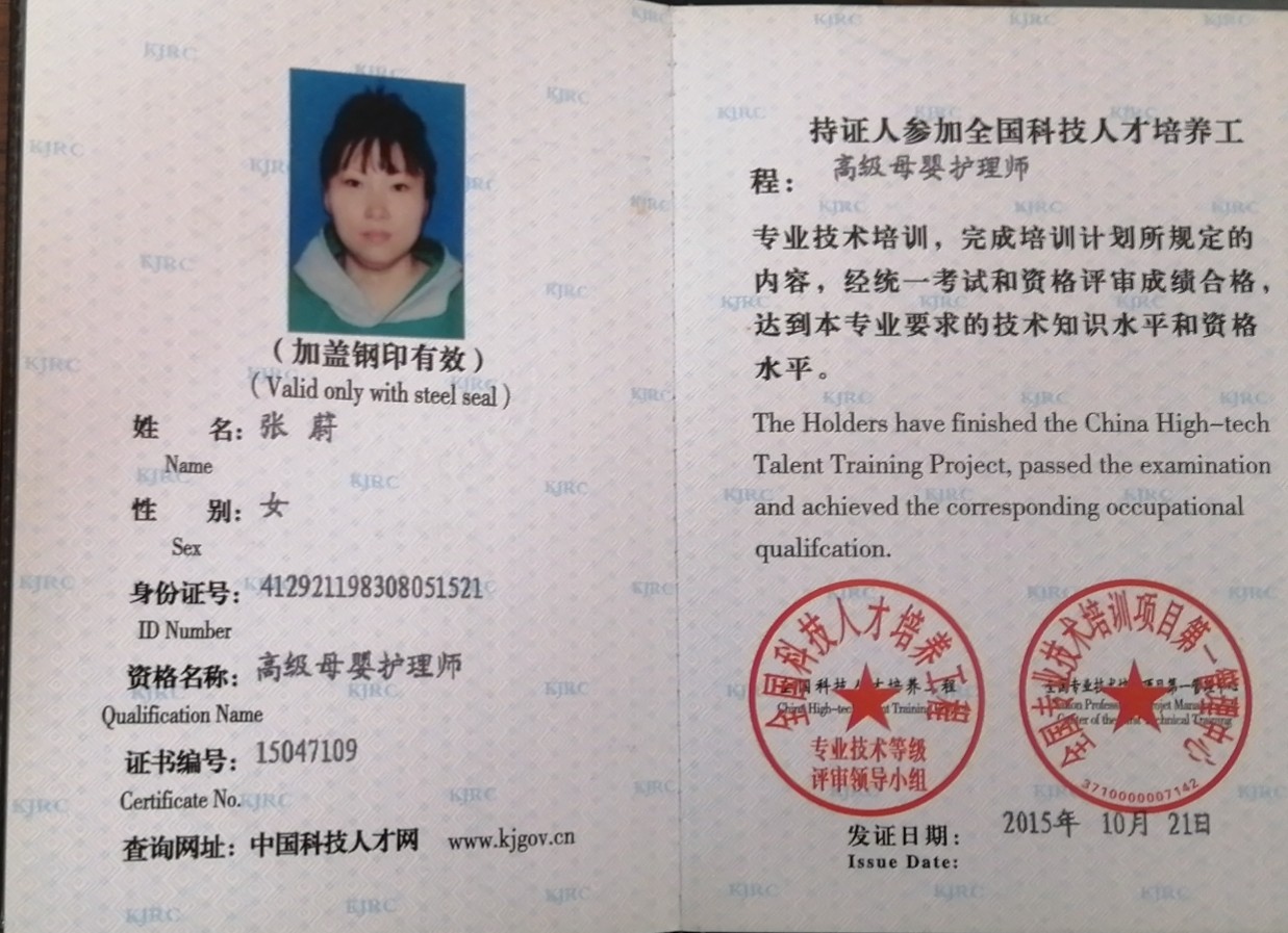 2016年从事特可欣,带过30多个宝宝。性格温和,做事心踏实,喜欢孩子,擅长月子餐,产妇及婴儿护理 产妇护理技能:月子餐制作,乳房护理,心里疏导,恶露观察,子宫复旧、产褥期的科学指导等。 婴儿护理技能:抚触,被动操,排气操,新生儿常见疾病的观察及预防如:黄疸,湿疹,臀红,尿布疹等。