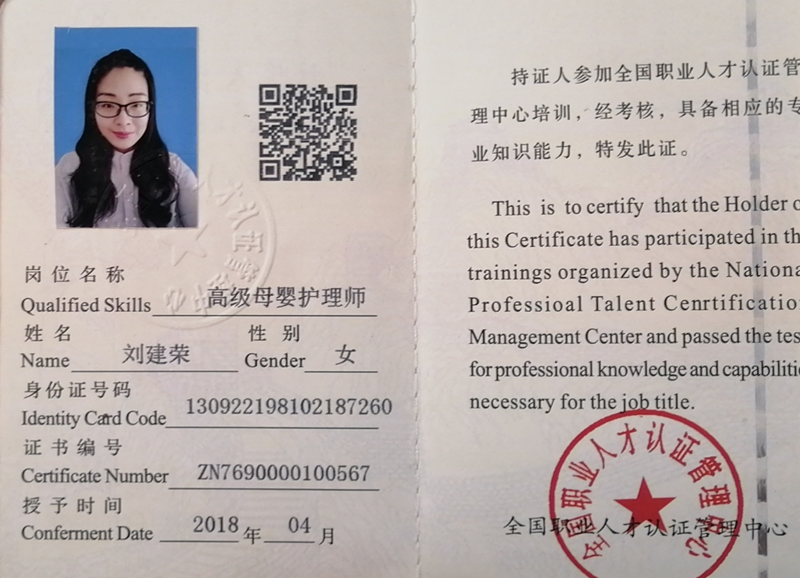 2014年从业特可欣,性格开朗,勤劳肯干,沟通能力强。擅长催乳,月子餐,产后形体恢复等; 产妇护理技能:月子营养配餐,催乳,形体恢复,按摩调理,恶露观察及子宫复旧,心理疏导;产褥期科学指导; 特殊产妇护理(妊娠高血糖、高血压、乳腺炎、高龄产妇;等); 特殊宝宝护理(双胎,低体重儿、肺炎、脐疝、肠胀气等;)。 婴儿护理技能:洗澡,抚触,被动操,排气操;婴儿常见疾病的观察及预防指导:如:幽门痉挛,肠痉挛,黄疸观察,脐带消毒,鹅口疮,泪囊阻塞,尿布疹,湿疹等;婴儿大小便的观察,啼哭的观察等等