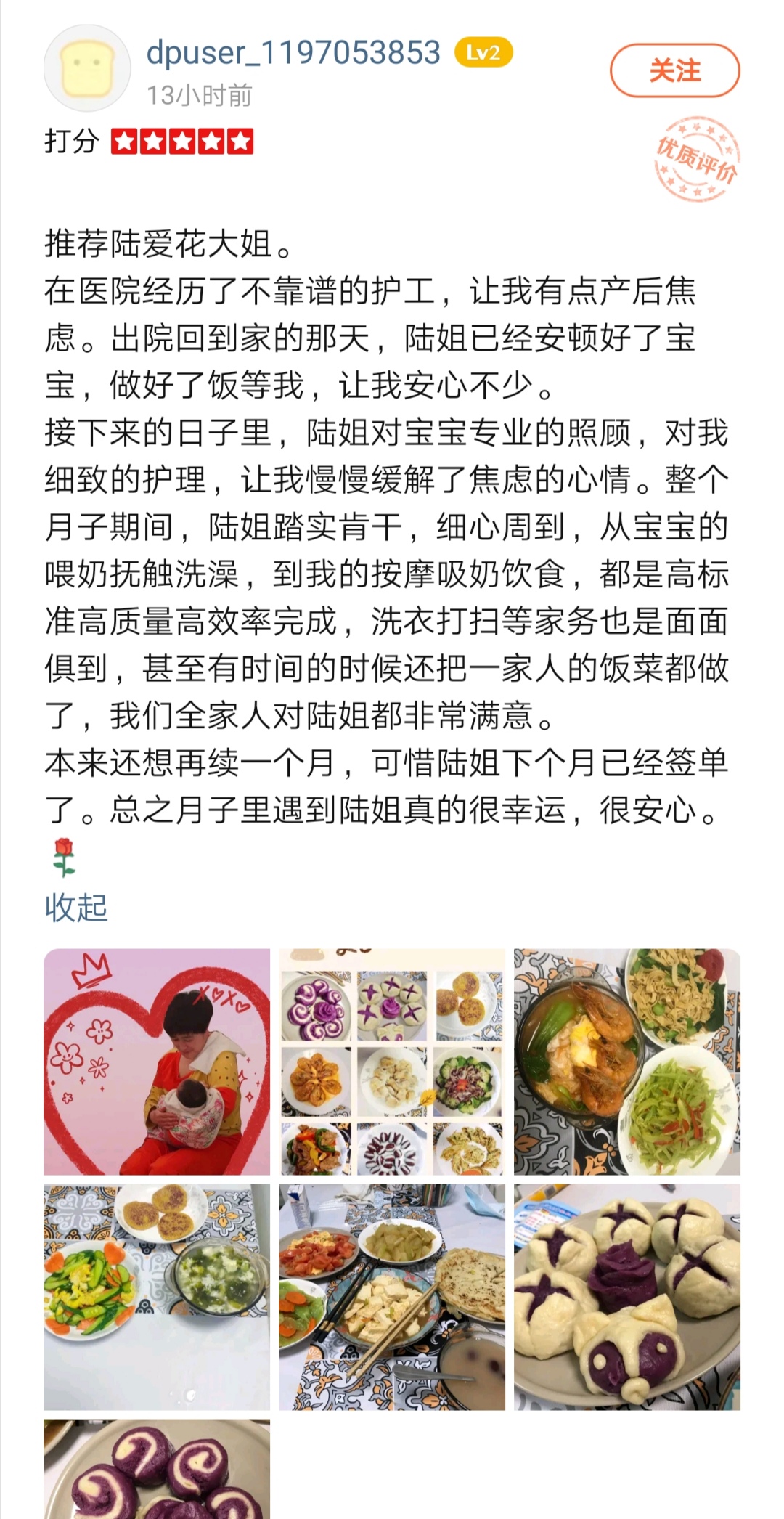 2016年加入特可欣从事月嫂工作,本人性格沉稳,做事踏实、有责任心。我会向对家人一样对待所有的宝宝和宝妈 擅长面食北方家常菜(煲汤、饺子、面条、烙饼)产妇及新生儿的护理。 产妇护理:剖腹产及顺产侧切的护理、乳房护理、月子餐配制、产褥期的科学指导、恶露的观察等; 婴儿护理:洗澡、抚触、被动操、排气操、新生儿早教、新生儿常见病的观察及预防;如:湿疹、臀红、黄疸、脐带消毒等。
