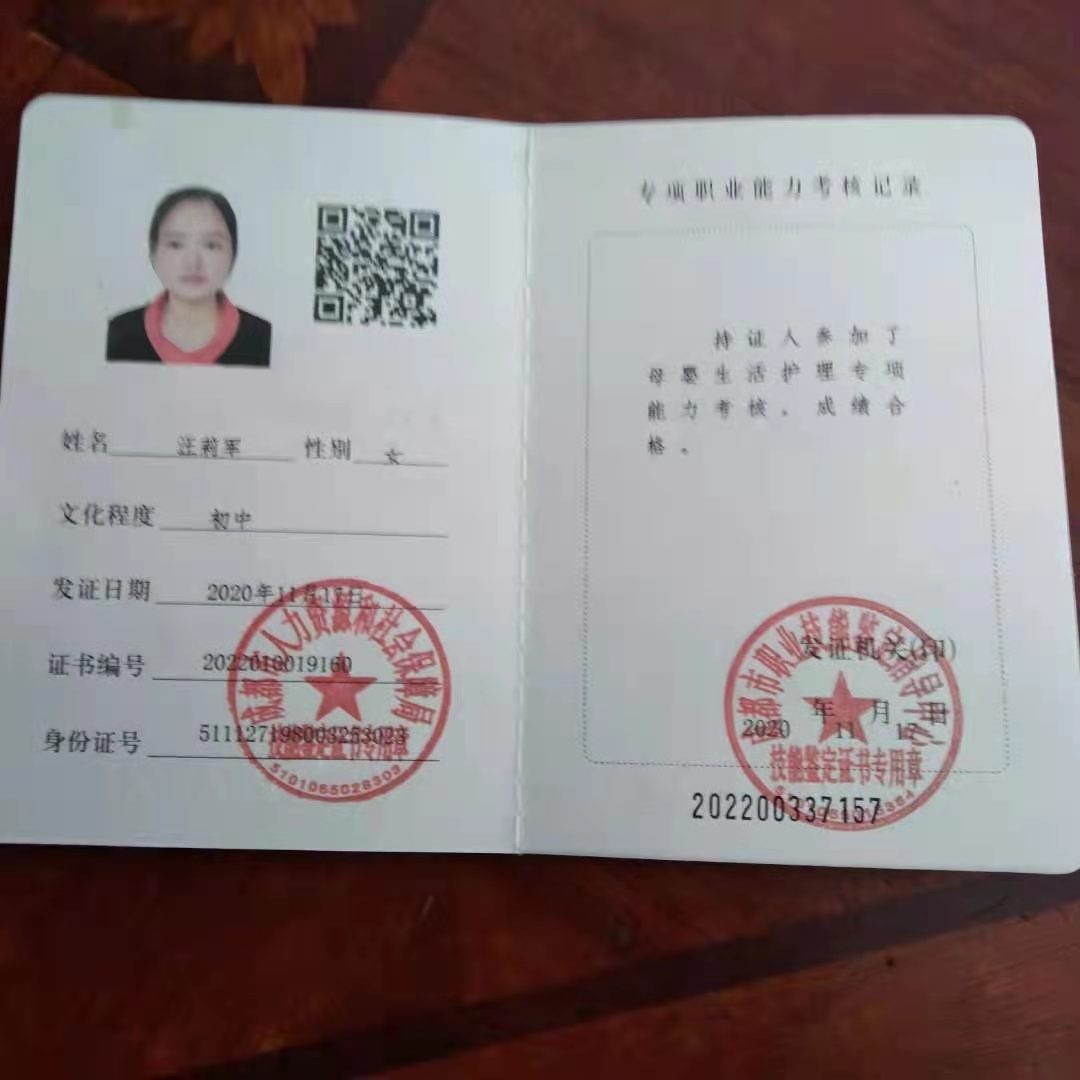 2017年从事母婴行业,会煲汤,性格开朗好沟通。产妇护理技能:营养餐合理配制,子宫复旧,产褥期的科学 指导. 婴儿护理技能:早教,被动操,排气操,抚触,洗澡,常见疾病的观察及指导,如:脐带消毒,黄疸观察,湿疹的预防与护理,臀红的预防与护理等。